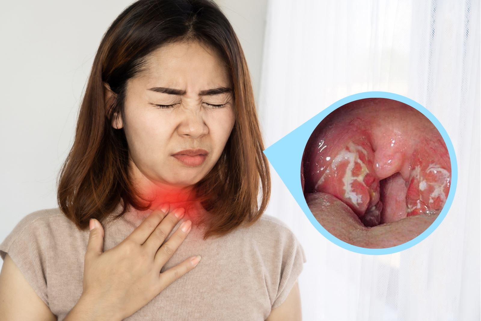 – Trường hợp bệnh nặng không có biểu hiện sốt cao nhưng có thể sưng cổ và làm hẹp đường thở.